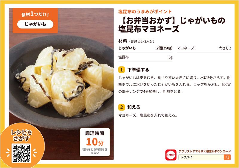 【お弁当おかず】じゃがいもの塩昆布マヨネーズ