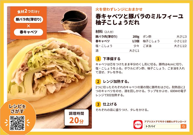 春キャベツと豚バラのミルフィーユ 柚子こしょうだれ