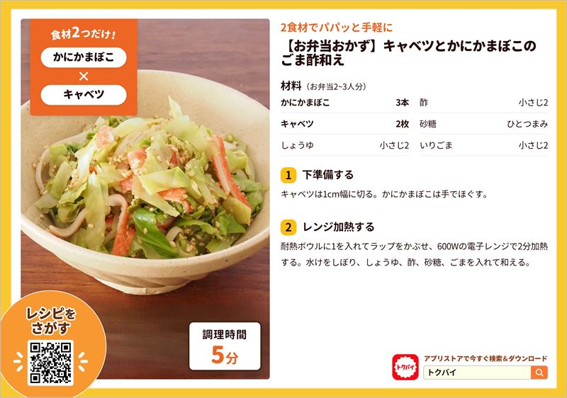 【お弁当おかず】キャベツとかにかまぼこのごま酢和え