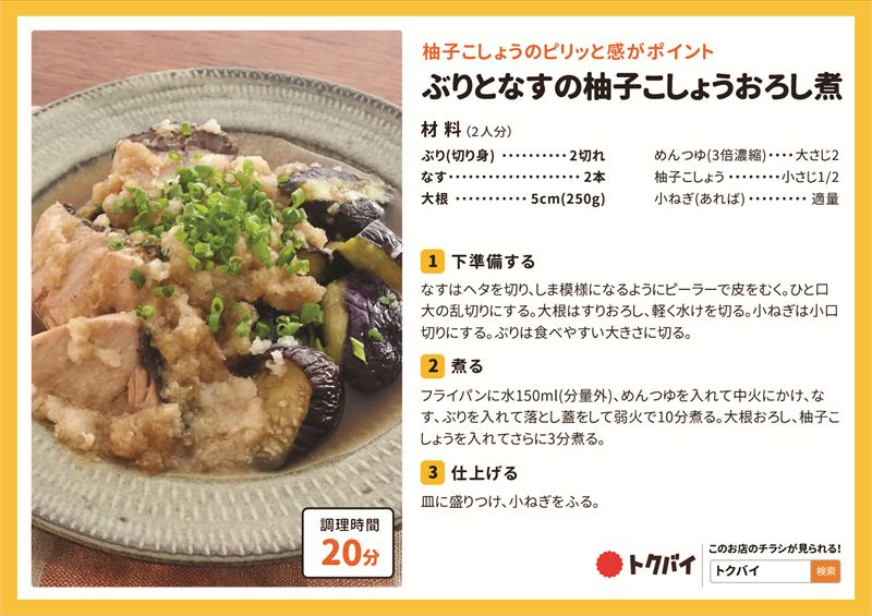 ぶりとなすの柚子こしょうおろし煮
