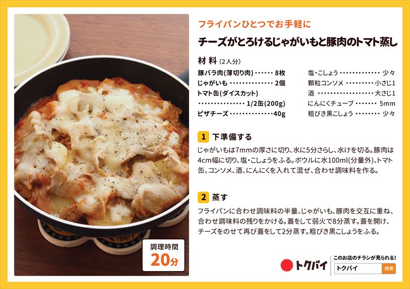 チーズがとろけるじゃがいもと豚肉のトマト蒸し