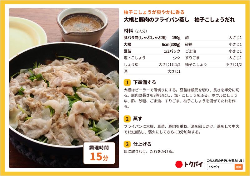 大根と豚肉のフライパン蒸し 柚子こしょうだれ